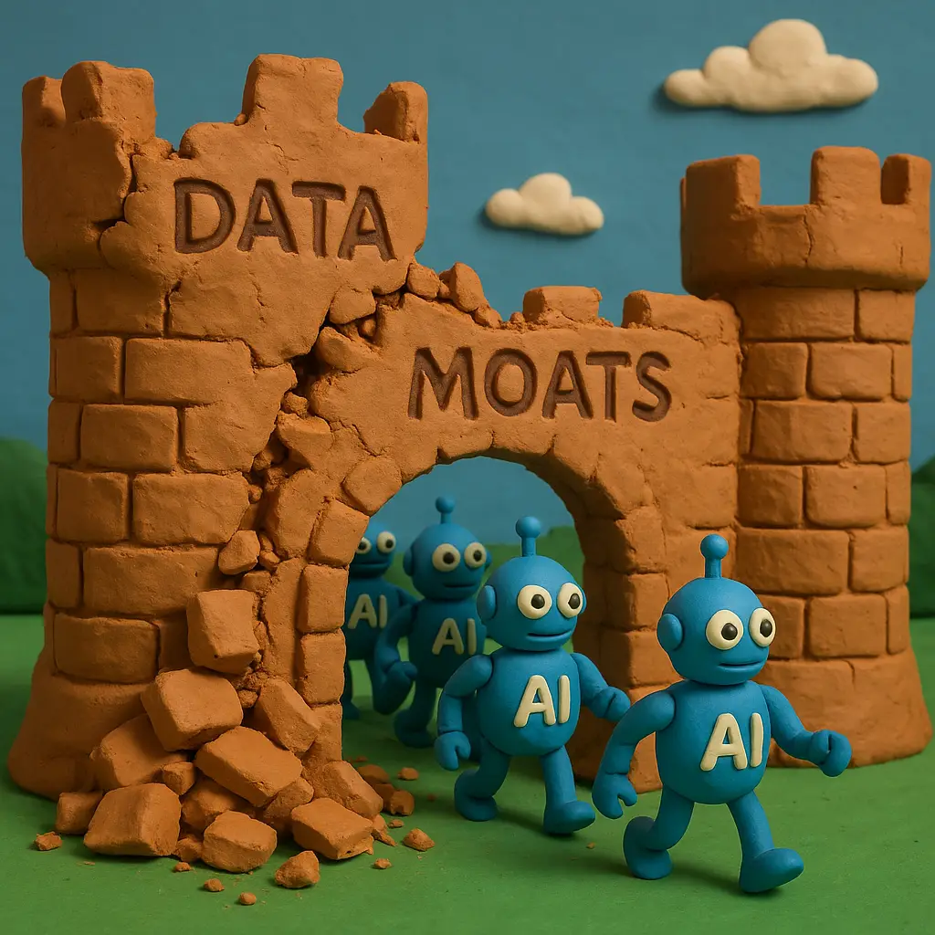 Foundation models changed everything. When GPT-4 can reason about complex problems using training data from across the internet, your proprietary customer dataset stops being a castle wall and starts looking like a speed bump.